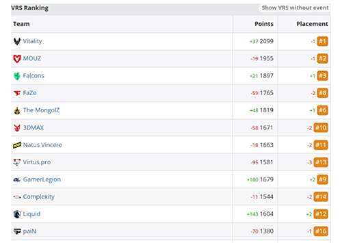 VRS积分是HLTV根据算法计算的动态积分,与V社官方排名采用不同标准,但能反映战队近期表现。赛事成绩直接影响积分变动。