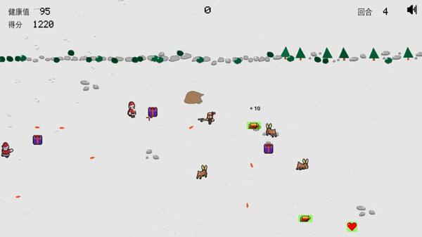 最重要的玩法就是扮演雇佣兵,快速干掉圣诞老人军团的小兵,包括精灵、驯鹿和商场圣诞老人,同时享受爵士乐,简单又刺激!