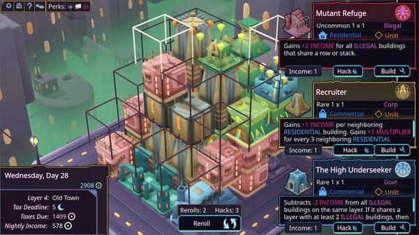 一款受《岛民》和《幸运房东》启发的极简赛博朋克城市建造游戏。