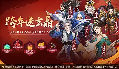 1月24日19:00~20:00期间,纯阳掌门【李忘生】为大家带来新年贺礼;