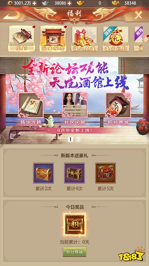 小伙伴们在天龙酒馆签到或投稿就可以获得积分,兑换实用游戏道具。