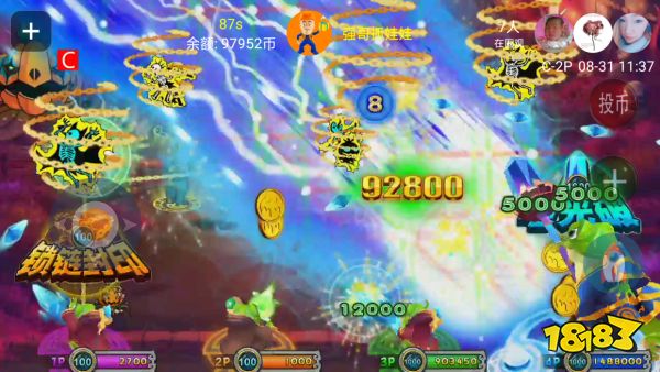 进入街机版块,选一个空闲房间,首先开始游戏,点”投币“,增加炮弹,底分增加,点一次投币,底分+1000,一般可以先上100000分;