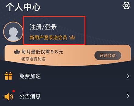 下载完奇游,记得注册账号,注册成功后可以免费领取奇游会员加速时长。