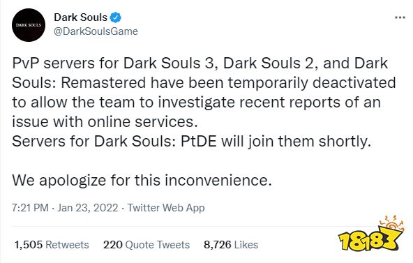 据说这个新漏洞功能更像一个特洛伊木马病毒,而不仅仅是作弊,它们会获取玩家的个人信息,在后台运行,甚至将玩家电脑变砖。针对服务器出现的漏洞问题,FromSoftware已作出回应,在推文中他们表示《黑暗之魂3》、《黑暗之魂2》和《黑暗之魂重制版》的PVP服务器暂时关闭,而《黑暗之魂1:受死版》的服务也将被停用,官方表示了对玩家的歉意。