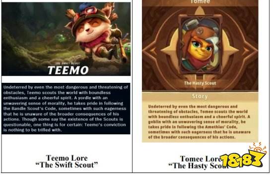 此外部分英雄的背景故事也大幅度照搬,相似程度几乎是原文直接复制粘贴,甚至懒到只替换了文中“约德尔”的英雄种族一词。“迅捷斥候”摇身一变成为“草率斥候”。