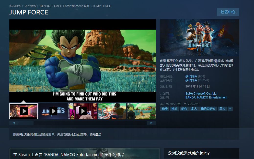 万代南梦宫旗下动漫人物格斗游戏《Jump大乱斗》各平台数字版已于今日(北京时间2月8日)停止销售,在线服务将于北京时间8月25日上午9点关闭。