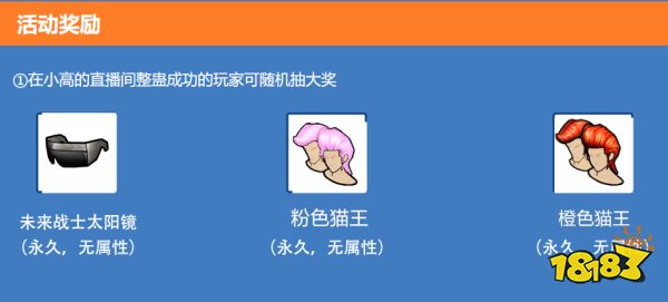 在小高的直播间整蛊成功的玩家可随机抽大奖,此外在直播过程中,高老师也会给参与弹幕互动的玩家送出:超级赛亚人5(白色,60天,弹跳+3)奖品福利等。