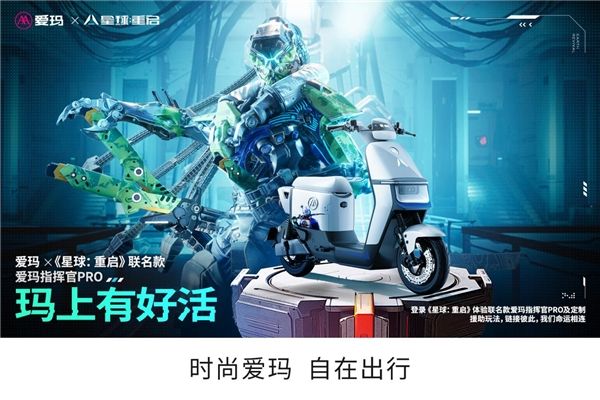 爱玛电动车与《星球:重启》的此次跨界联合,对于既喜欢爱玛电动车,又喜爱科幻类游戏的年轻玩家来说,当然是一场“双厨狂喜”的跨界盛事。爱玛指挥官Pro无论是在热门综艺里,在游戏场景中,还是在车水马龙的都市街头,都散发出智行王者的华丽神采,这款车全新的时尚科技骑行体验,也必将受到越来越多用户的欢迎。