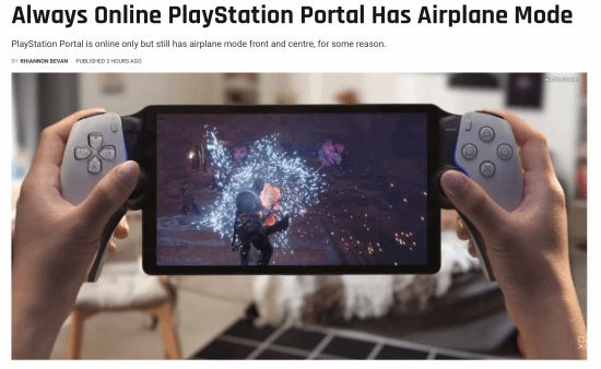 今日,TheGamer发文评价PS Portal仍然有飞行模式,称开了这个功能将使这款手持设备完全无用。