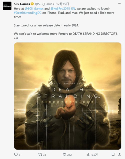日前,发行商505 Games发文宣布,iOS版《死亡搁浅:导演剪辑版》将延期发售。该作原定于今年年底发售,新的发售日期为2024年年初。