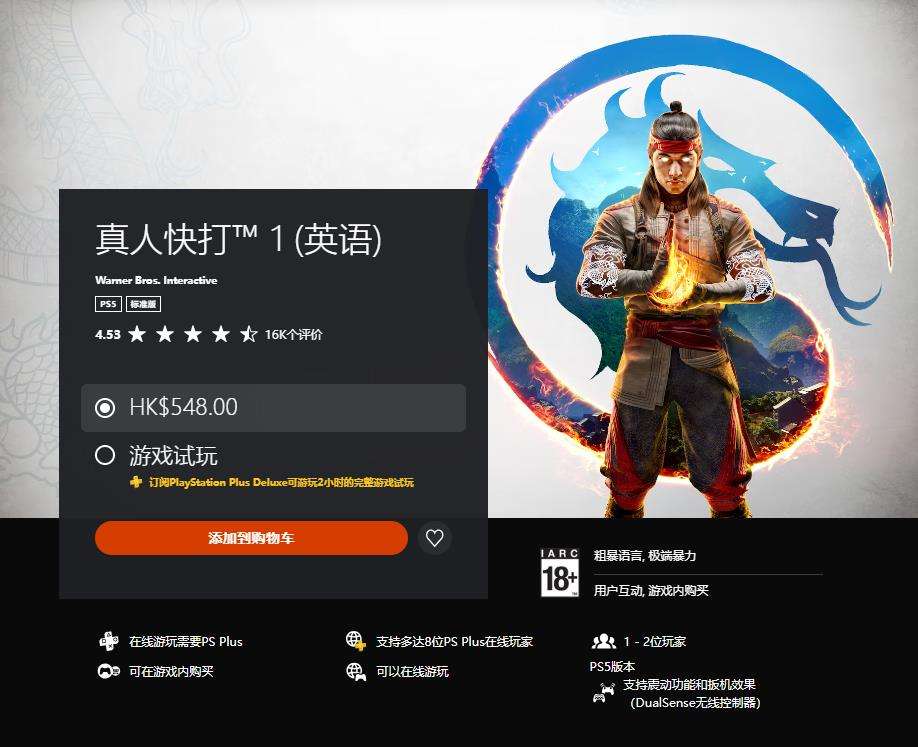 港服PlayStation Plus三档会员添加了一款新试玩游戏:《真人快打1》,现在订阅该服务的玩家最多可以试玩该作2个小时,购买正式版后,所有试玩的进度和奖杯都将被继承。不过值得注意的是,PS5版的《真人快打1》暂不不支持中文,存储占用114.414GB。