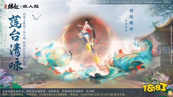 礼盒售价52,000通宝。不绑定款将于5月30日20:10上架800份;绑定款将于5月30日20:15至7月15日7:00限时上架。