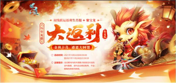 活动将一直持续到2024年12月1日23:59,在此期间,返利上限不为0且不超过返利上限的情况下,在聚宝龙服务器每充值100元,就可以获得总价值预期为50元的奖励作为返利,即返还比例预期为50%。这些奖励包含银元宝和赠品道具,将以天天领工资,达成个人成就领奖励和充值得福袋这三种形式分别返还。