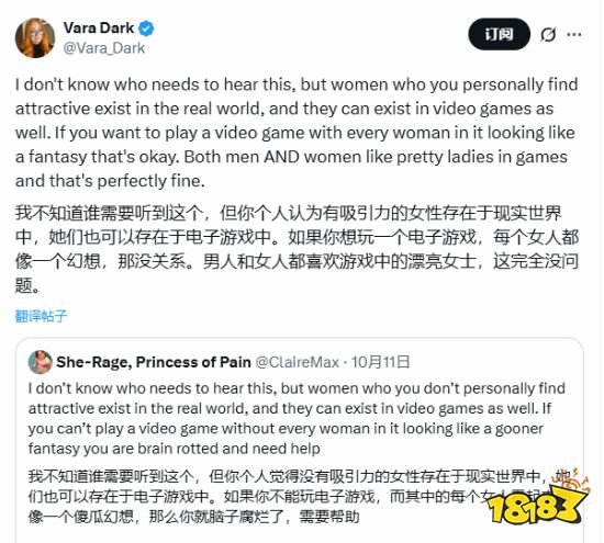 2025年10月,欧美社交媒体爆发游戏女性角色审美争议,博主@ClaireMax与@Vara_Dark的对立观点引爆“审美自由vs同质化设计”争论,迅速蔓延至审美单一化、行业商业需求与创作自由冲突等深层议题,凸显游戏产业性别表征长期矛盾 。