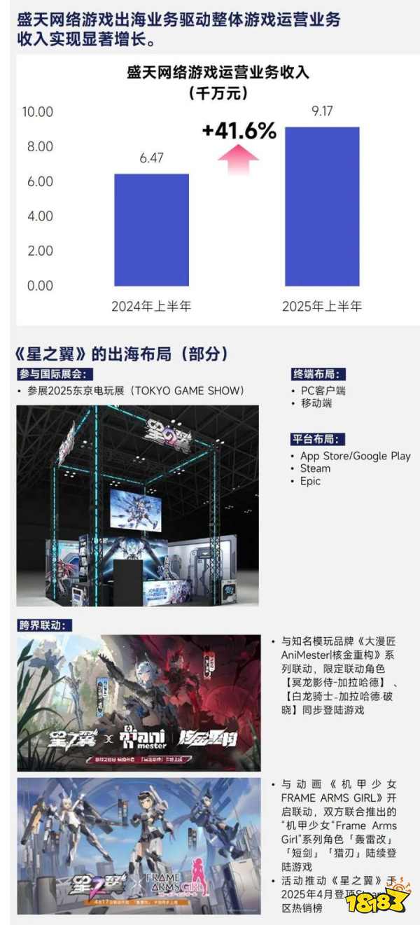 IP运营与游戏出海业务正成为盛天网络发展的关键潜力来源。IP运营方面,企业优势主要体现在优质IP获取、成熟的IP监修体系,以及不断强化的原创IP塑造三大能力上。依托与头部版权方的长期合作,企业持续丰富IP储备,并凭借深度内容理解与监修经验,确保改编作品的高还原度与高品质表现,加速IP商业价值的实现。同时,企业加快原创IP的体系化建设,通过国际展会、跨界联动与内容更新不断提升品牌影响力,为原创IP的延展与出海提供持续动能。此外,多终端、多平台的发行策略也显著扩大了全球用户触达范围。因此,在游戏出海业务方面,多端布局与长线化IP运营将成为盛天网络海外增长的重要支撑力量。