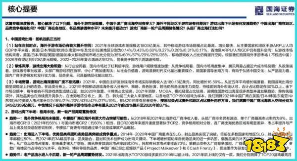《游戏出海专题报告:格局未定,长风万里》报告提要